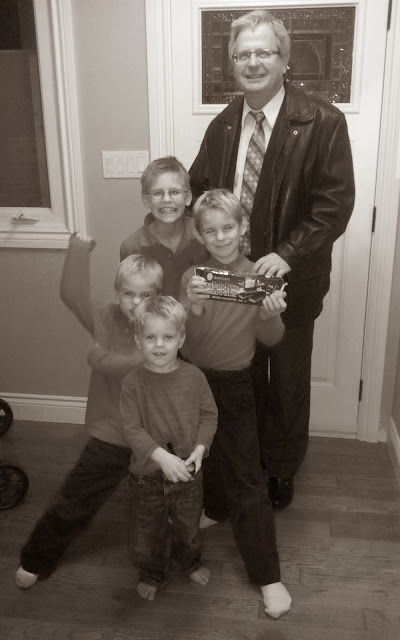This week my dad came over with the first packaged "cookies n' creme" wafer to show the boys. The boys were totally excited and thrilled that they were part of this new kind of cookie.